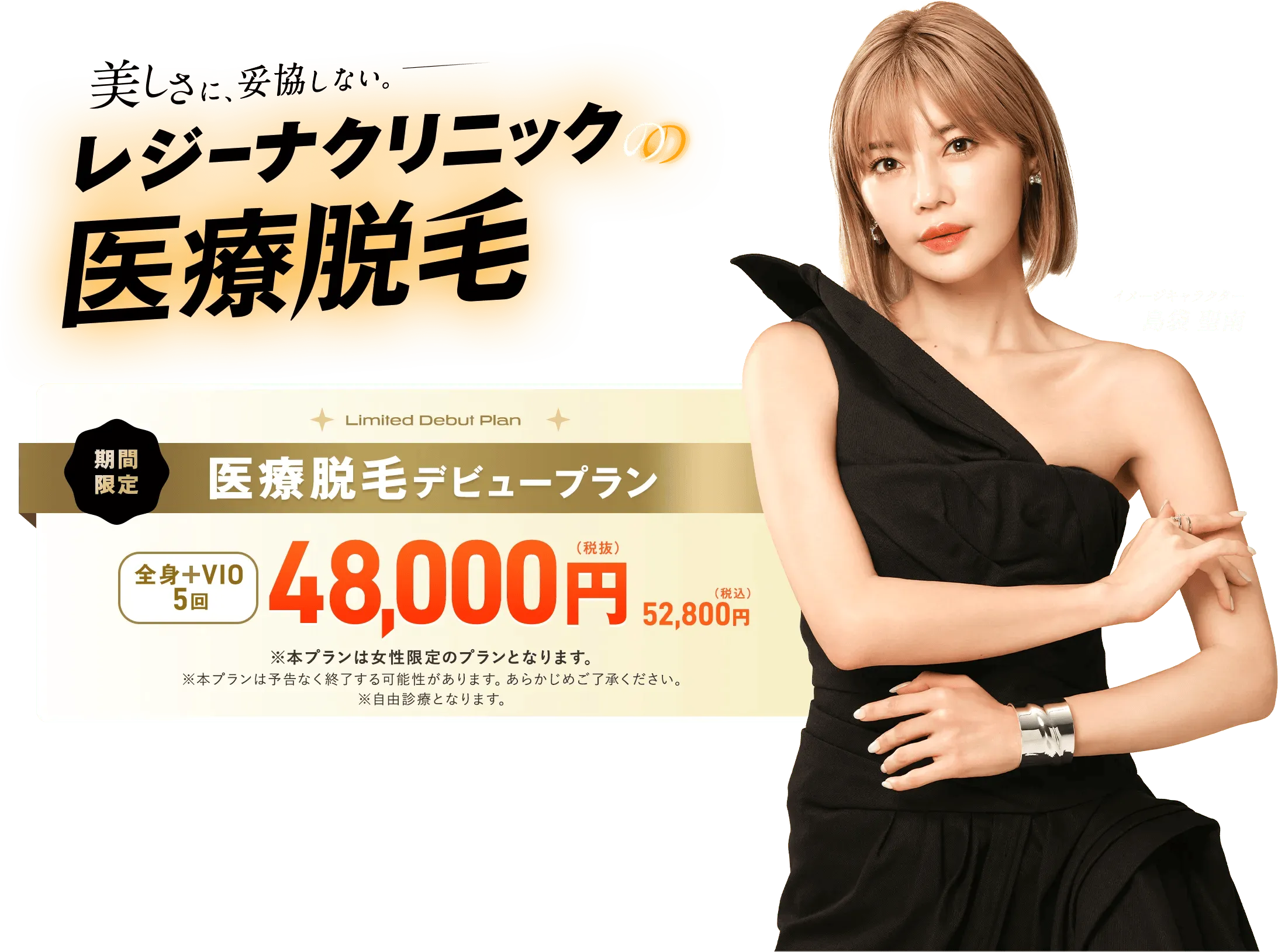 レジーナクリニックは、ほかのクリニックで医療脱毛1回分を体験するよりもお得な全身+VIO5回分のデビュープランを52,800円の安い価格で提供しています。