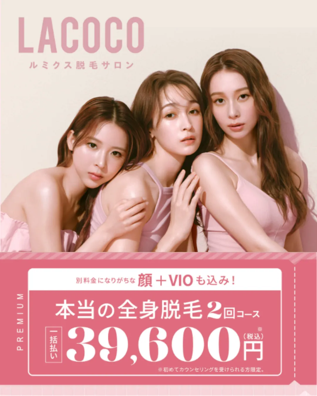 ※ラココの【顔+VIO含む】全身脱毛2回分が
