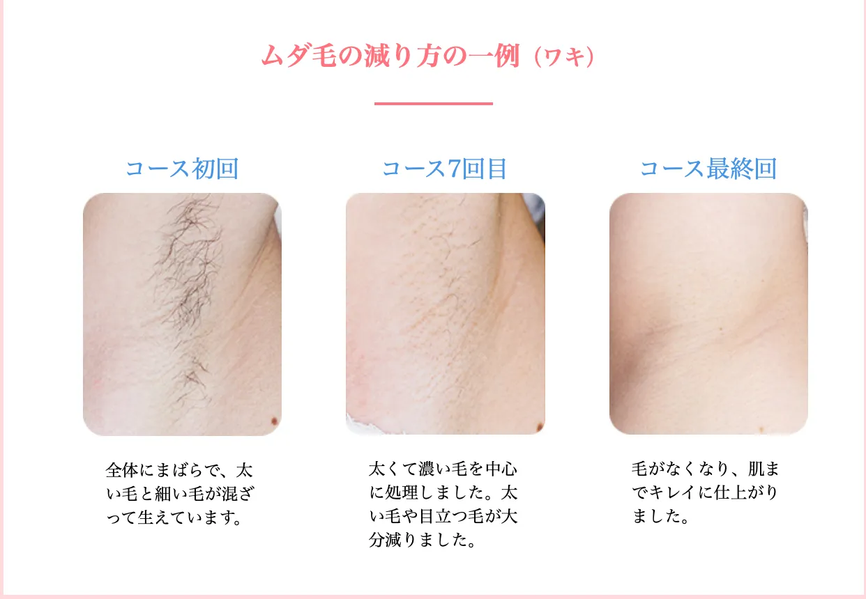 そこで、ムダ毛の減り方の一例を以下に挙げるので、参考にしてください。