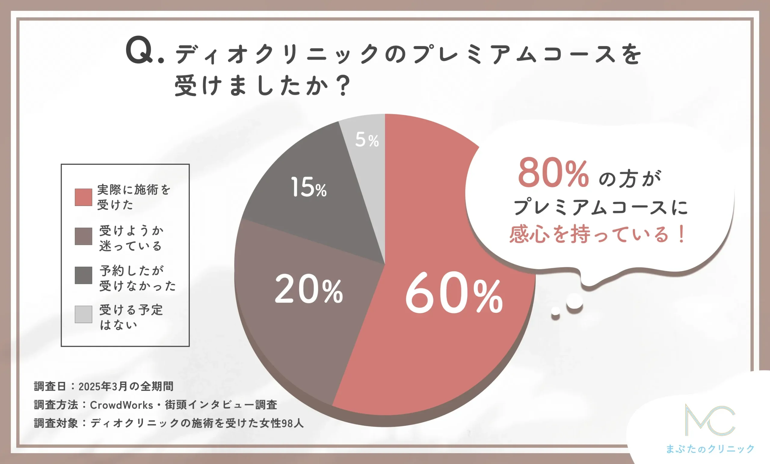 編集部そこで、実際にウィルビークリニックで施術を受けた人に、アンケート調査を行いました。