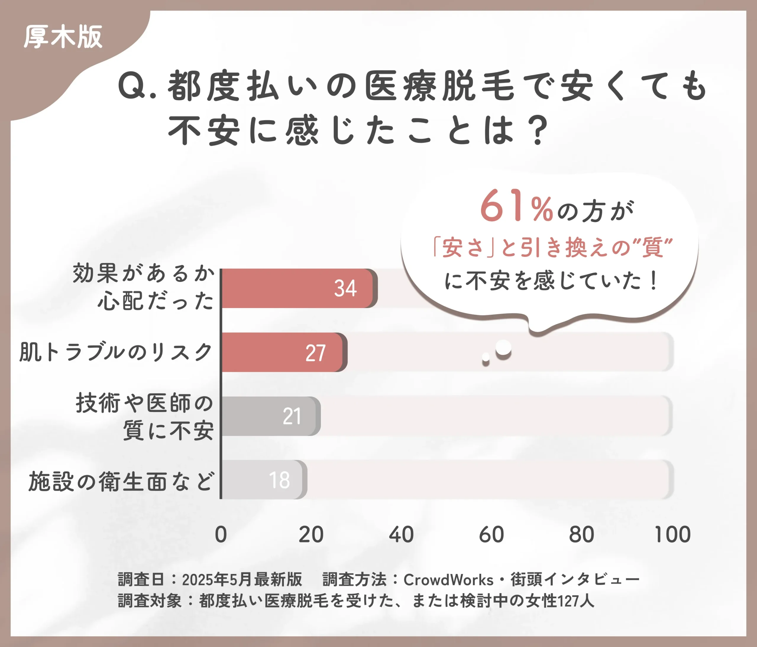 口コミアンケートの結果から、70%の方が「短期間で効果」「専門医の施術」を決め手にクリニックを選んだことが分かりました。