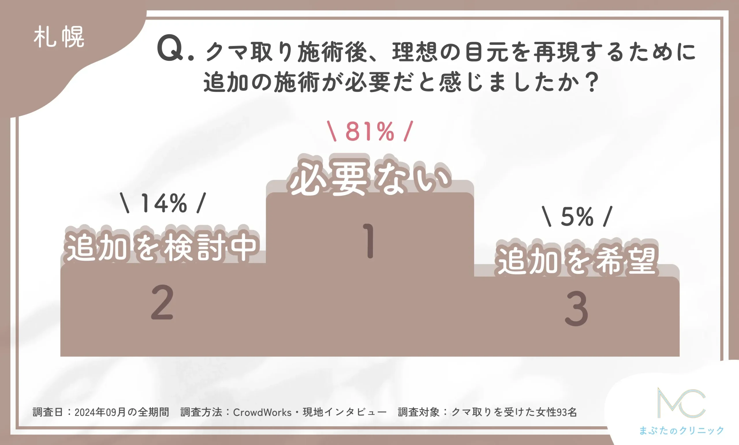 口コミアンケート調査の結果、二重整形を受けた方のうち、90%が目元の高さに満足と回答していることが分かりました。