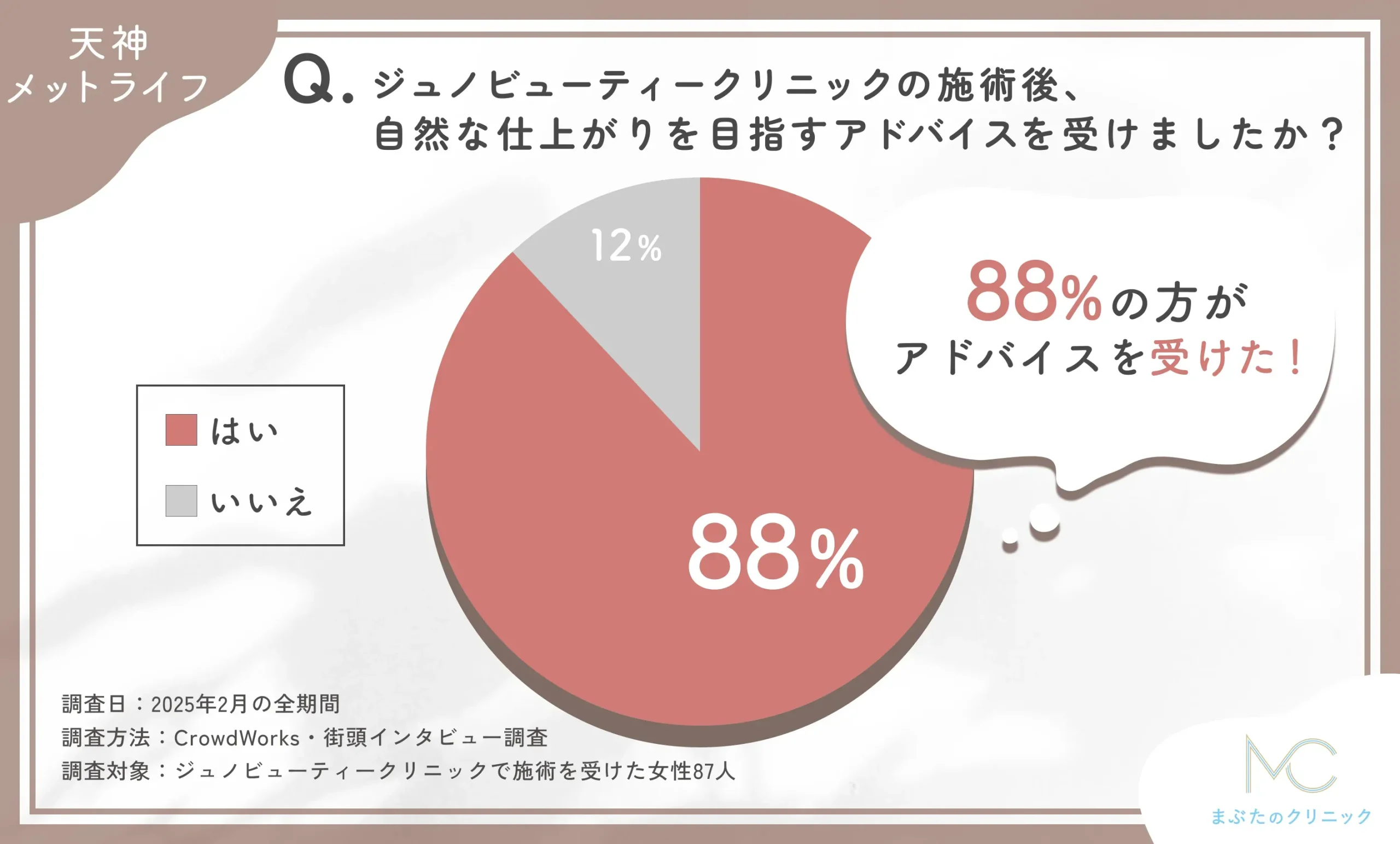 アンケート調査を行った結果、福岡でクマ取りをした94%の方が、希望通りの自然な見た目になったということがわかりました。