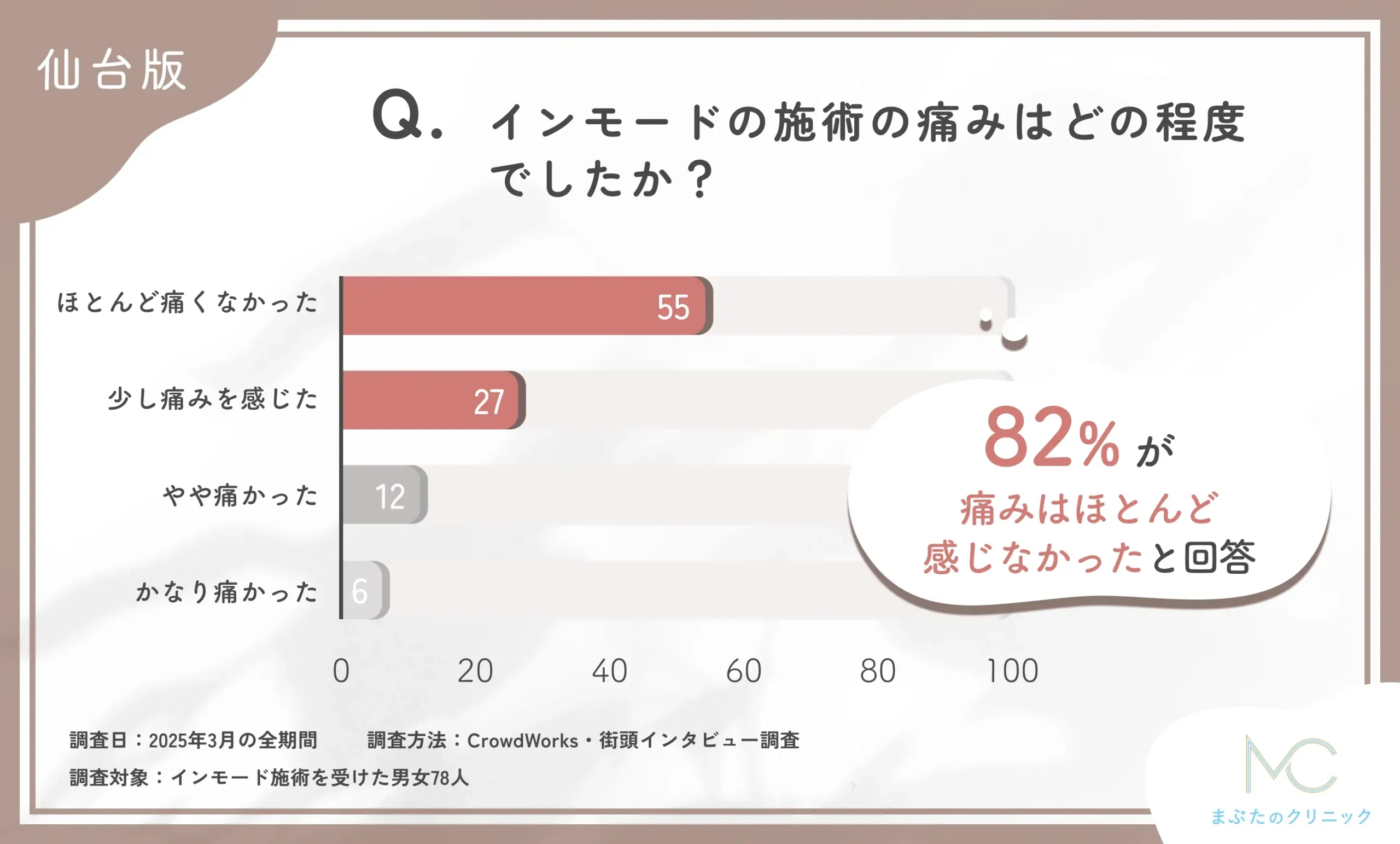 スーパーナチュラルの方が施術範囲が広いためダウンタイムが長引くと考えている方も多いですが、実際に利用した方はスタンダードよりも腫れが少ないと回答しています。