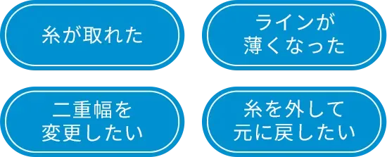 | こんな 方は 注意 | 外出が多い人 メイク落としを 頻繁に行う人 | PCを長時間 使用する人 心身のケアが 十分でない人 | 目元にアレルギーが 起こりやすい人 加齢による肌の薄さが 気になる人 | 目の下に たるみがある人 甲状腺疾患が ある人 |