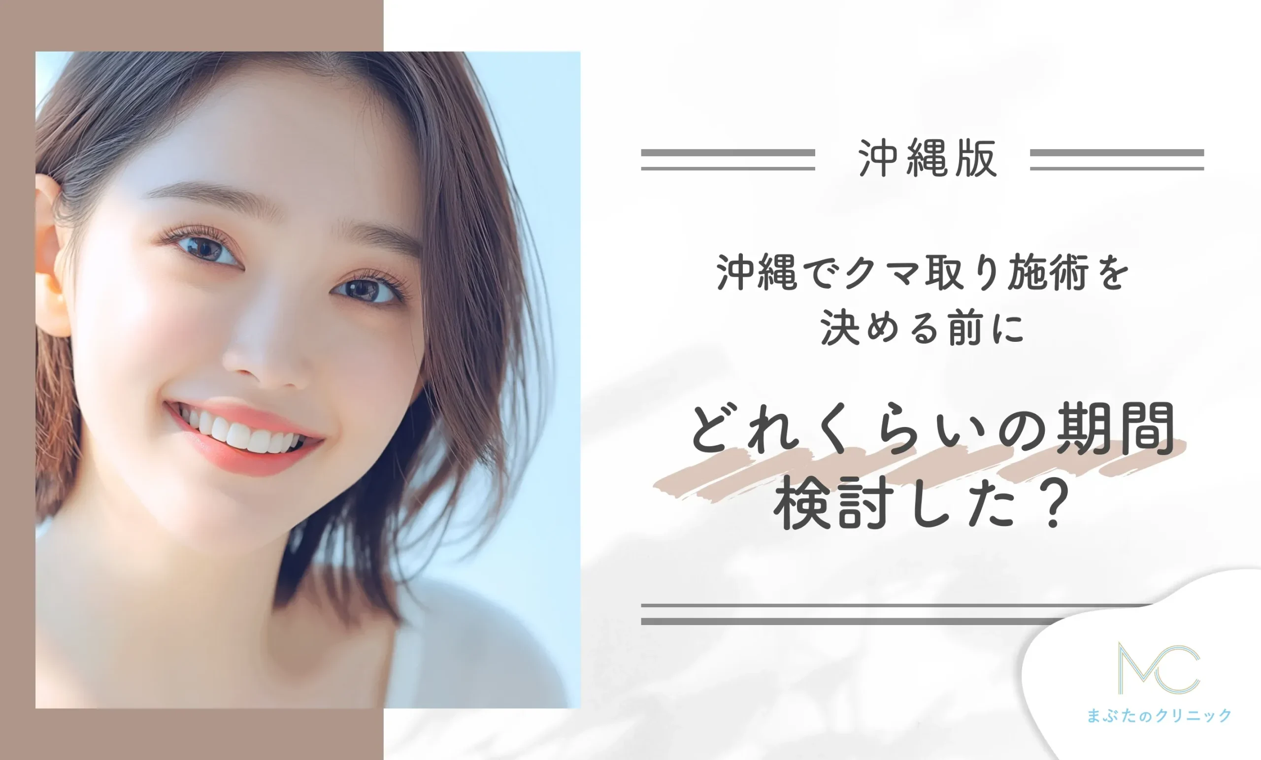 eクリニック 横浜みなとみらい院は、効果的なクマ取りを総合美容外科医が行っているクリニックです。 保証制度を設けているため、クマ取り後も安心して過ごせます。 モニター同意で治療費が安くなるので、クマ取りを安く受けたい方にもおすすめです。 カウンセリングは無料であり、クマ取りの相談が気軽にできます。 沖縄で効果が高いクマ取りを安く受けたい方は、ぜひカウンセリング予約をしてみてください。