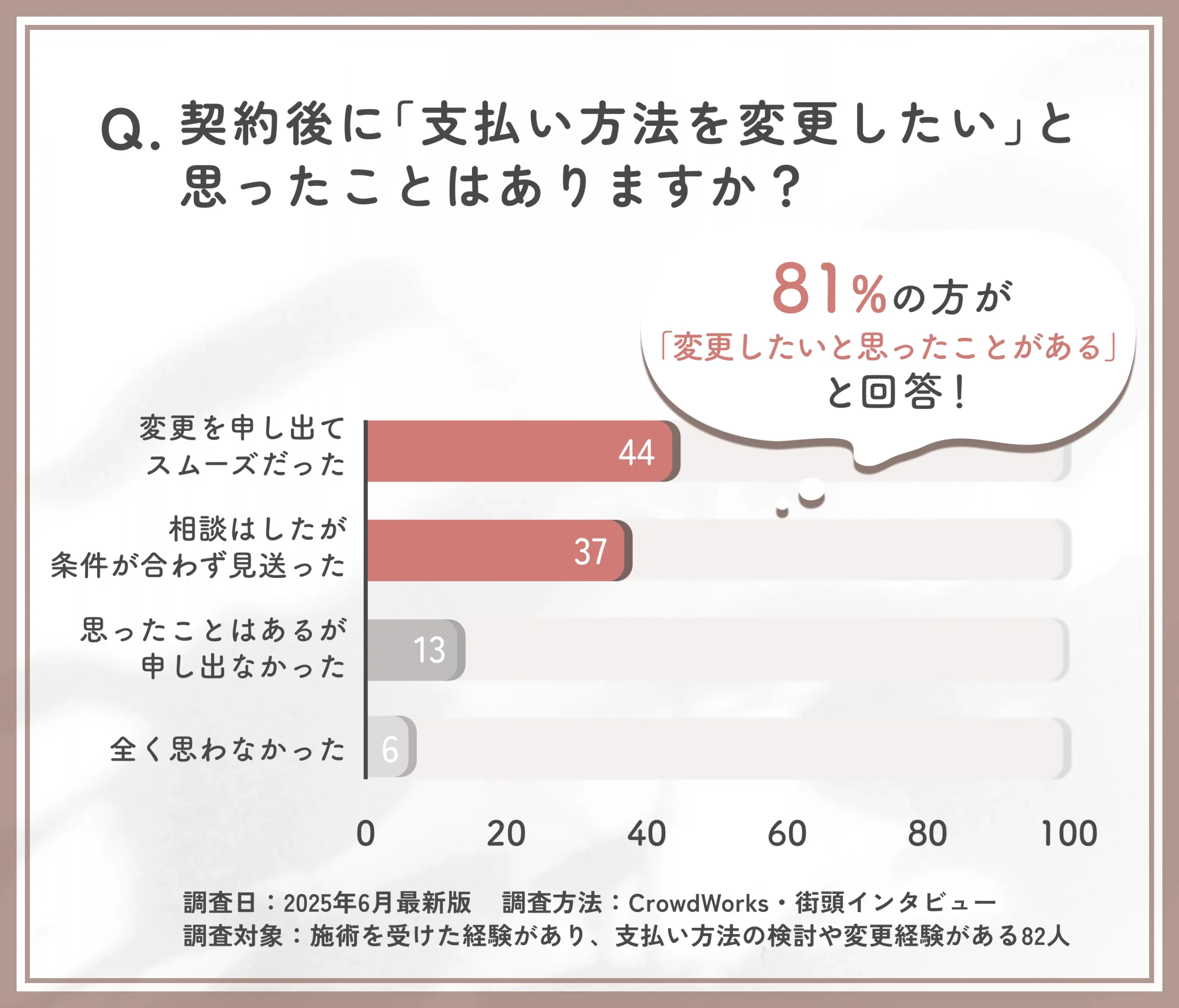 アンケートの結果、82%の方が「痛みは軽度または許容範囲内」と回答していることが分かりました。