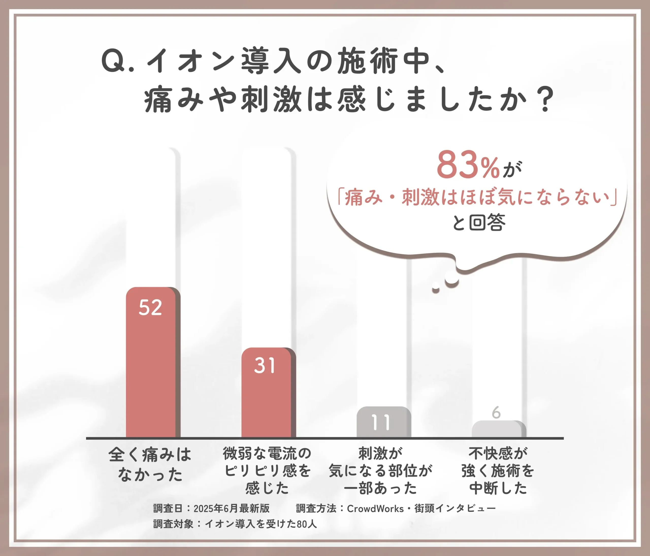 - ほとんど痛みを感じなかった: 50%