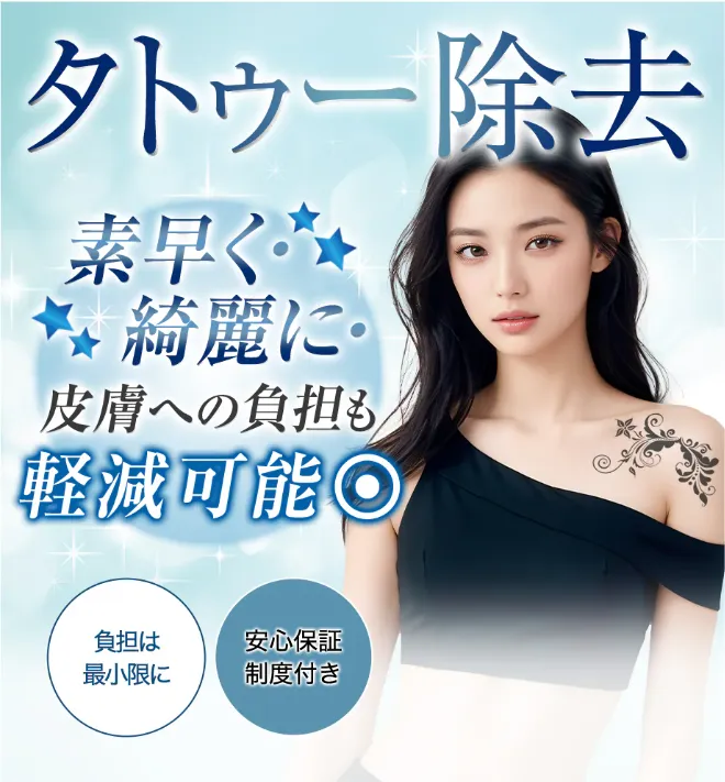 タトゥー除去(刺青除去)は、肌に入っているタトゥーをレーザー等を使用して除去する施術です。