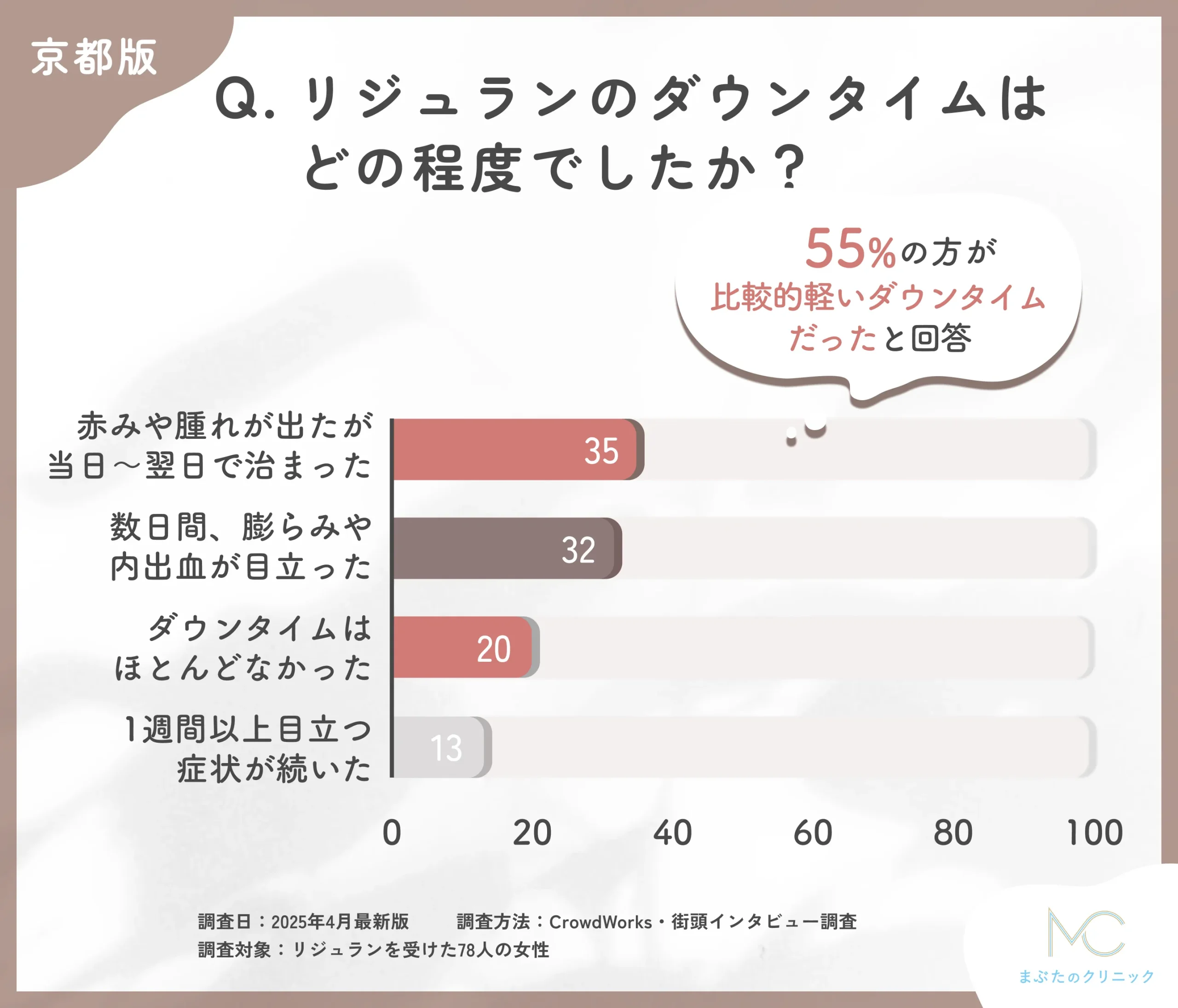しかし、大阪で安いリジュラン注射を検討している方の中には、実際に経験した方のダウンタイムがどの程度だったのか知りたい方も多いでしょう。
