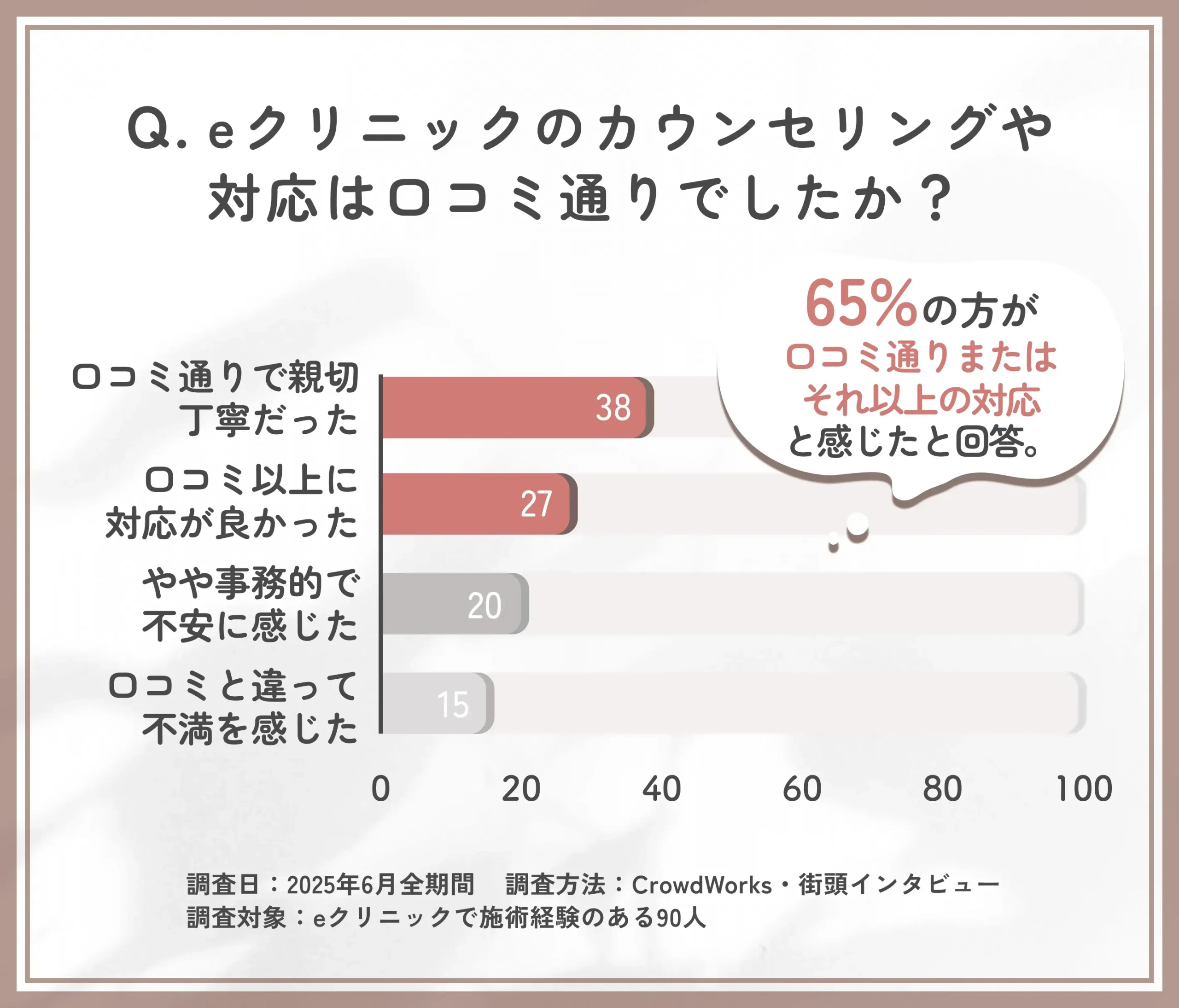 当記事の編集部は、TCBでエリシスセンスの施術を受けた方を対象に、満足度に対する独自の口コミアンケート調査を実施しました。