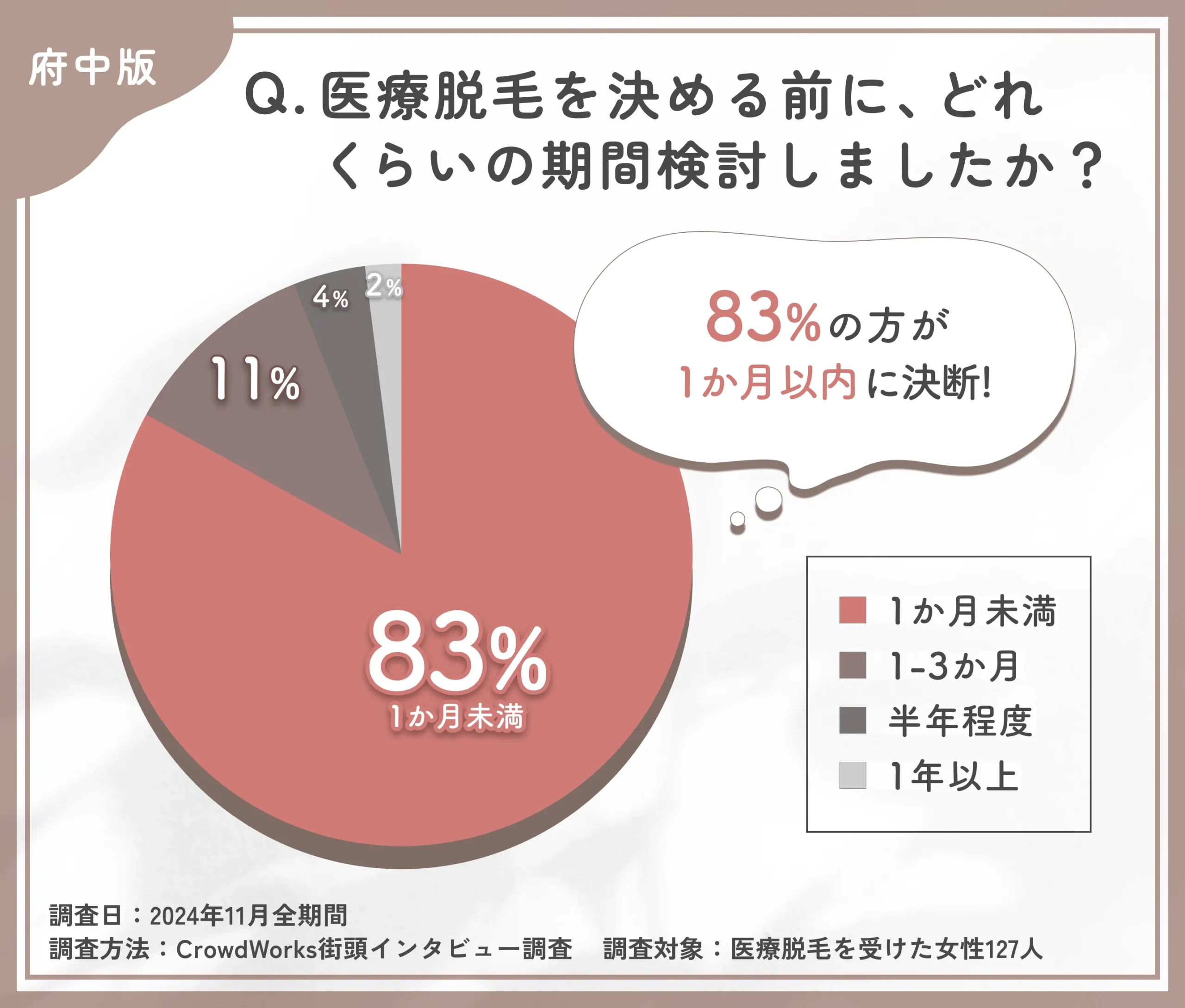 口コミアンケート調査の結果、eクリニック富山駅前院で施術を受けた方のうち64%が、口コミを見て選んだことが分かりました。
