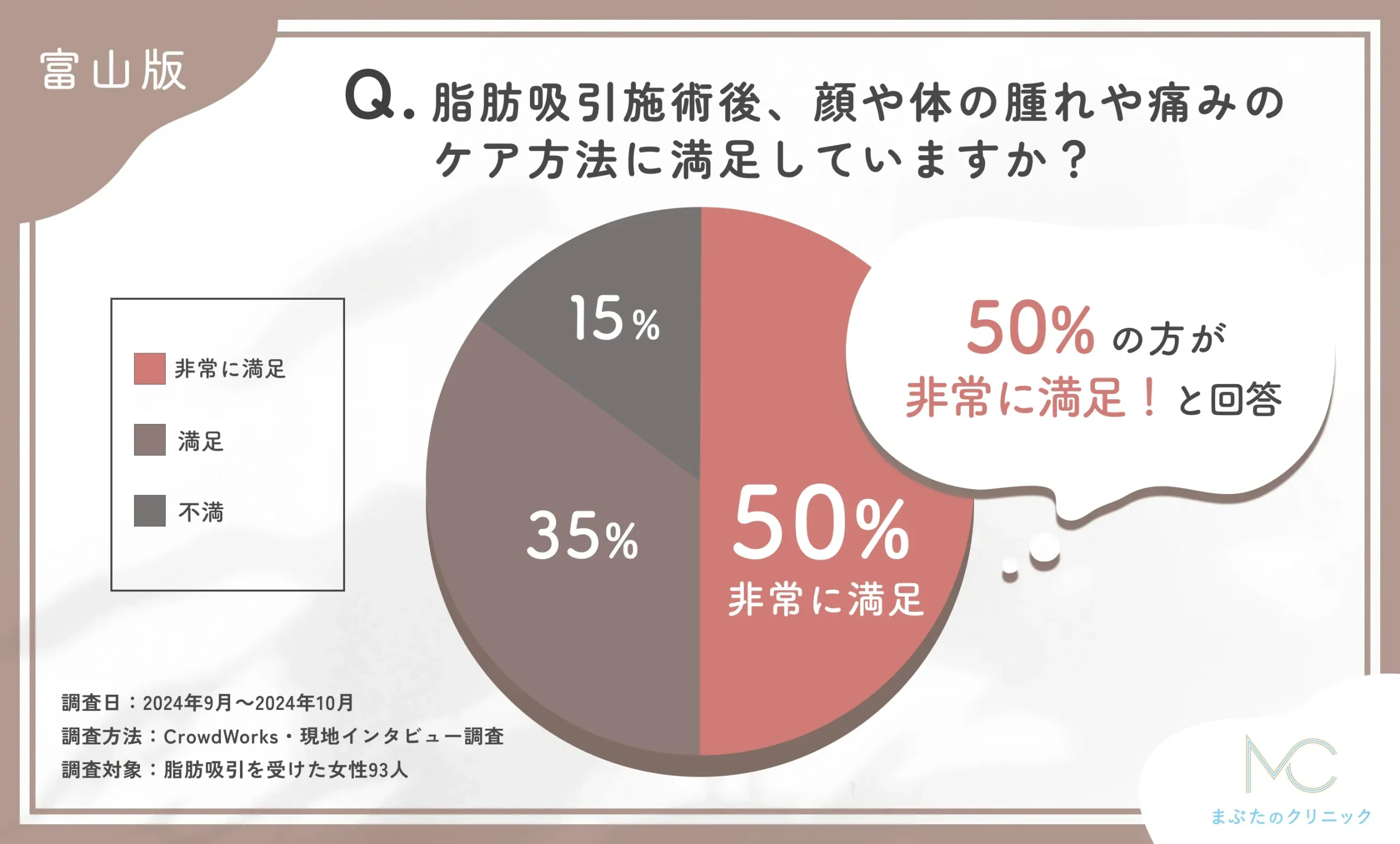 編集部編集部では、名古屋でおすすめの脂肪吸引医院で施術を受けた方に、アフターケアに満足したかについてアンケート調査を実施しました。
