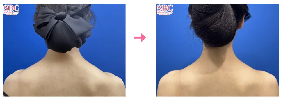 とはいえ、実際に長くなっているのではなく、施術により肩の位置が下がった結果、首が長くなったように見えるだけです。