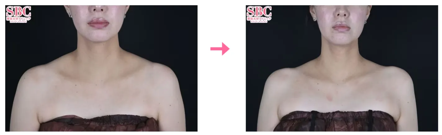 上記の症例からは、盛り上がった肩ラインが改善されたことが見て取れます。