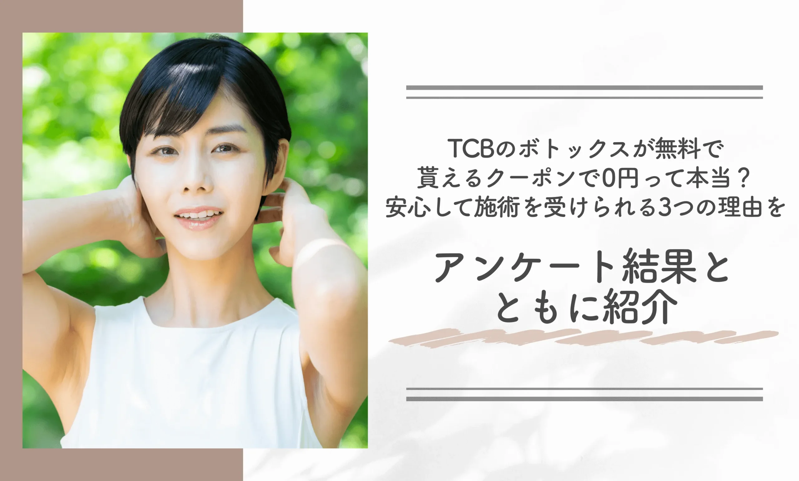 - TCBのボトックスが無料クーポンで0円って本当?安心して施術を受けられる3つの理由をアンケート結果とともに紹介