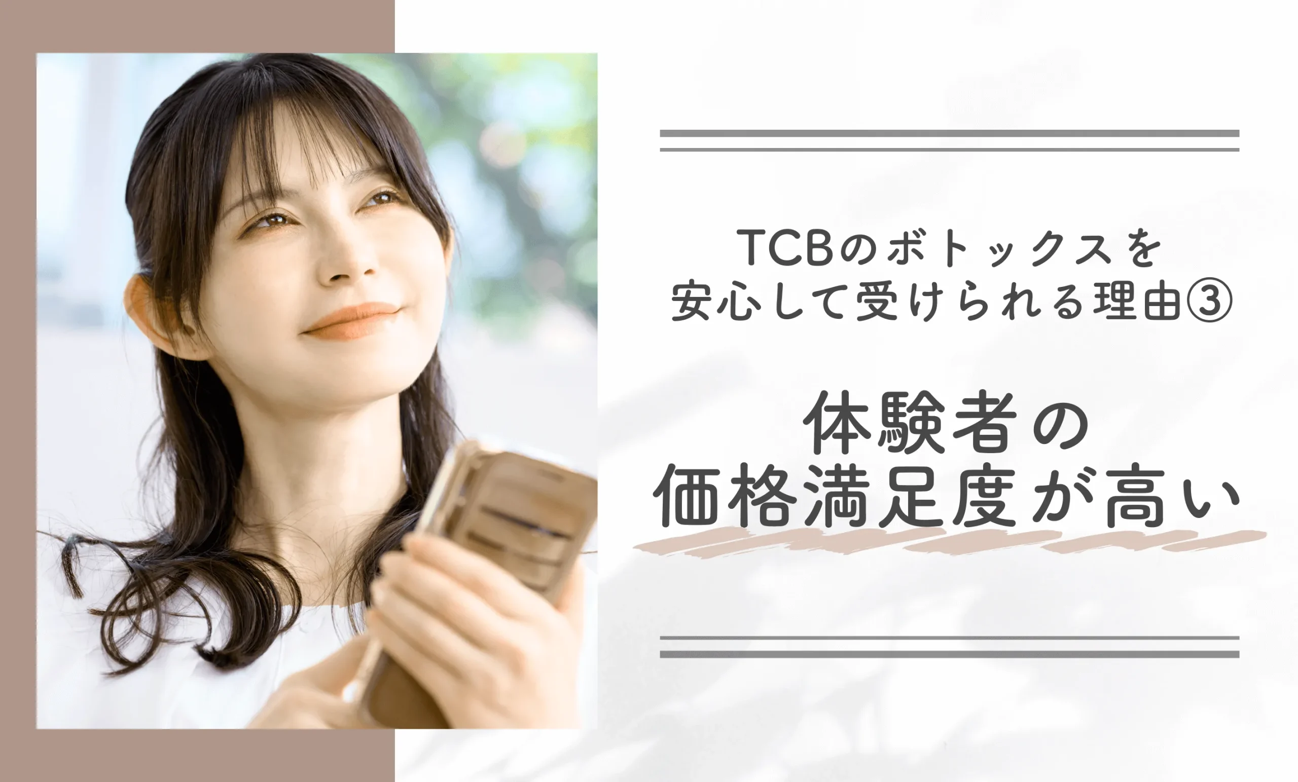 TCBのボトックスを無料クーポンでも安心して受けられる3つ目の理由は、体験者の価格満足度が高いことです。